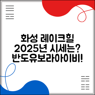 2025년 9월 시세를 기준으로 한 경기도 화성시 산척동 레이크힐반도유보라아이비파크10.2 아파트에 대한 효과적인 투자 전략을 소개합니다.