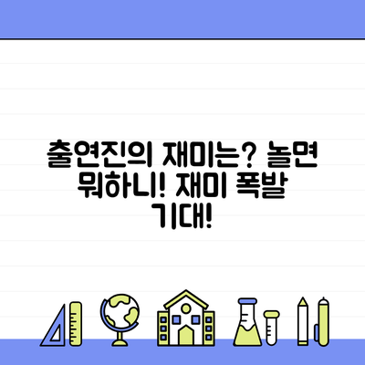 여러분, 놀면 뭐하니 출연진 이야기를 들으면 왠지 설렘이 느껴지지 않나요? 다양한 유머가 펼쳐질 그 현장, 상상만으로도 재미가 꽉 찹니다! 기대감이 높아지는 것은 유재석, 하하, 이이경 같은 유쾌한 출연진들이 있기에 가능한 일이죠.