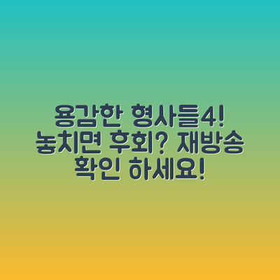 재방송 프로그램과 관련된 정보를 충분히 활용하여, 더욱 풍부한 시청 경험을 누리세요. ‘용감한 형사들4 재방송’을 통해 그간의 회차를 다시 보고, 팬들과의 소통을 통해 더욱 풍부한 즐거움을 느껴보시기 바랍니다.