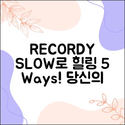 이제 여러분도 RECORDY SLOW와 함께 힐링의 순간을 만들어 가시길 바랍니다. 삶의 작은 변화가 큰 기쁨으로 이어질 수 있음을 잊지 마세요!