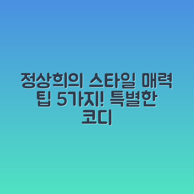 정상희의 스타일을 타 유명인사들과 비교하며 당신만의 매력적인 스타일을 완성하세요. 이 가이드의 핵심 목표는 일상에서 쉽게 따라할 수 있는 실용적인 팁을 제공하는 것입니다.