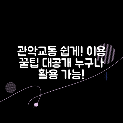 관악교통을 더욱 효과적으로 이용하고 싶다면, 다음의 팁을 참고해 보세요: