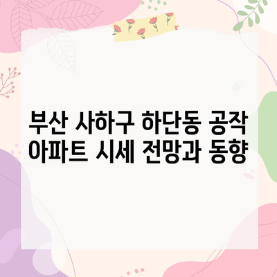 부산 사하구 하단동 공작 아파트 시세 전망과 동향